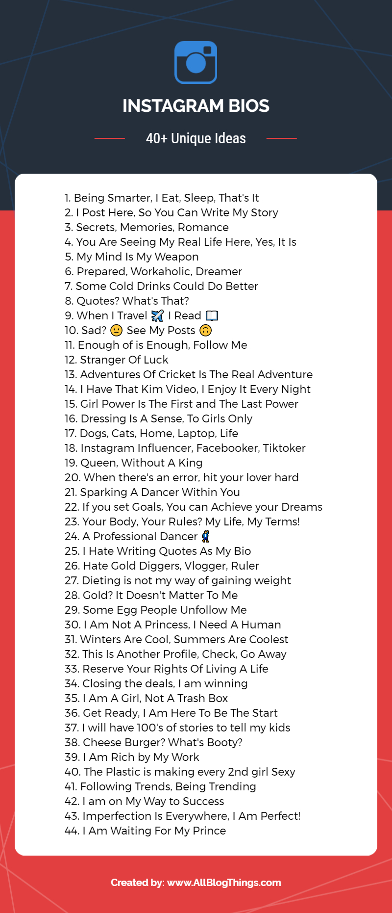 From funny instagram captions to song lyrics, this is literally the complete list of instagram captions.