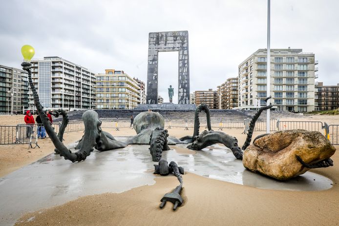 Waar eens de bakermat van het toerisme in de panne lag, pronkt nu een monumentale, bronzen sculptuur van fernand vanderplancke de panne. Ontwerp fernand vanderplancke (°1938, brugge) materiaal brons.